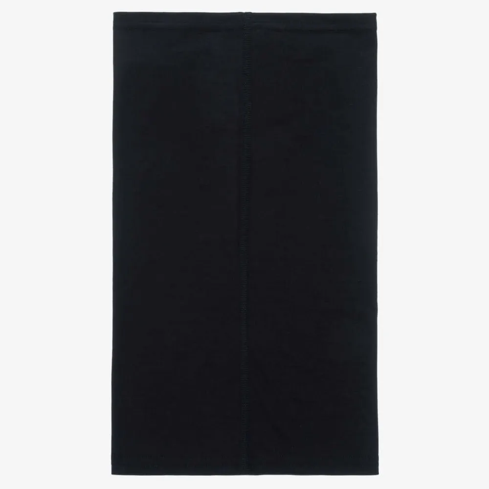 Dark navy blue snood for boys and girls by London-based brand Smalls Merino. Finely knitted in sustainable ZQ Merino wool, this protective accessory is highly breathable, moisture-wicking and suitable for all-year wear. The certified, hypoallergenic fabric is soft and lightweight and ideal for those with skin sensitivities. Easy to wear and extremely versatile, it can be worn as a scarf, headband, hat or face covering.