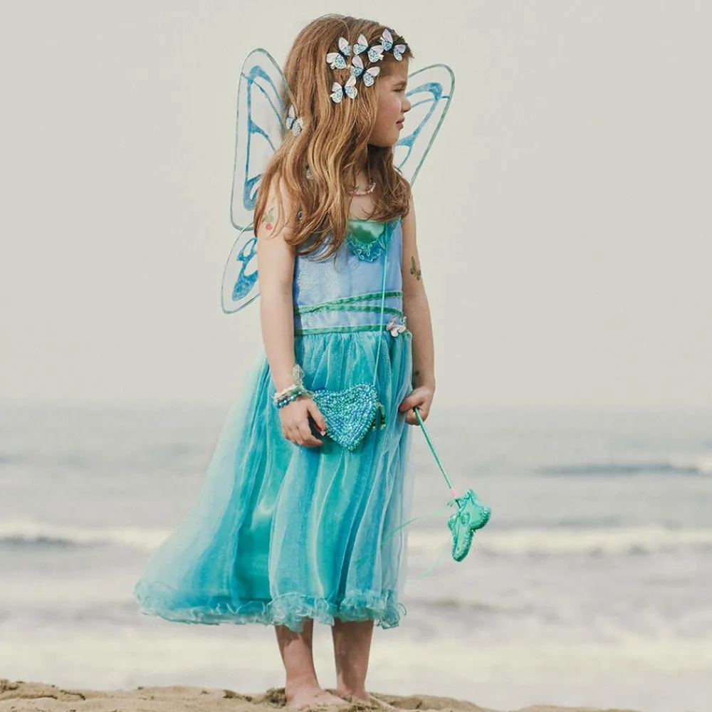 Gorgeous sparkly blue purse for girls by Souza. Covered in shimmery blue and green sequins, this heart-shaped shoulder bag is lined in satin, with a zip fastening and long cord strap.