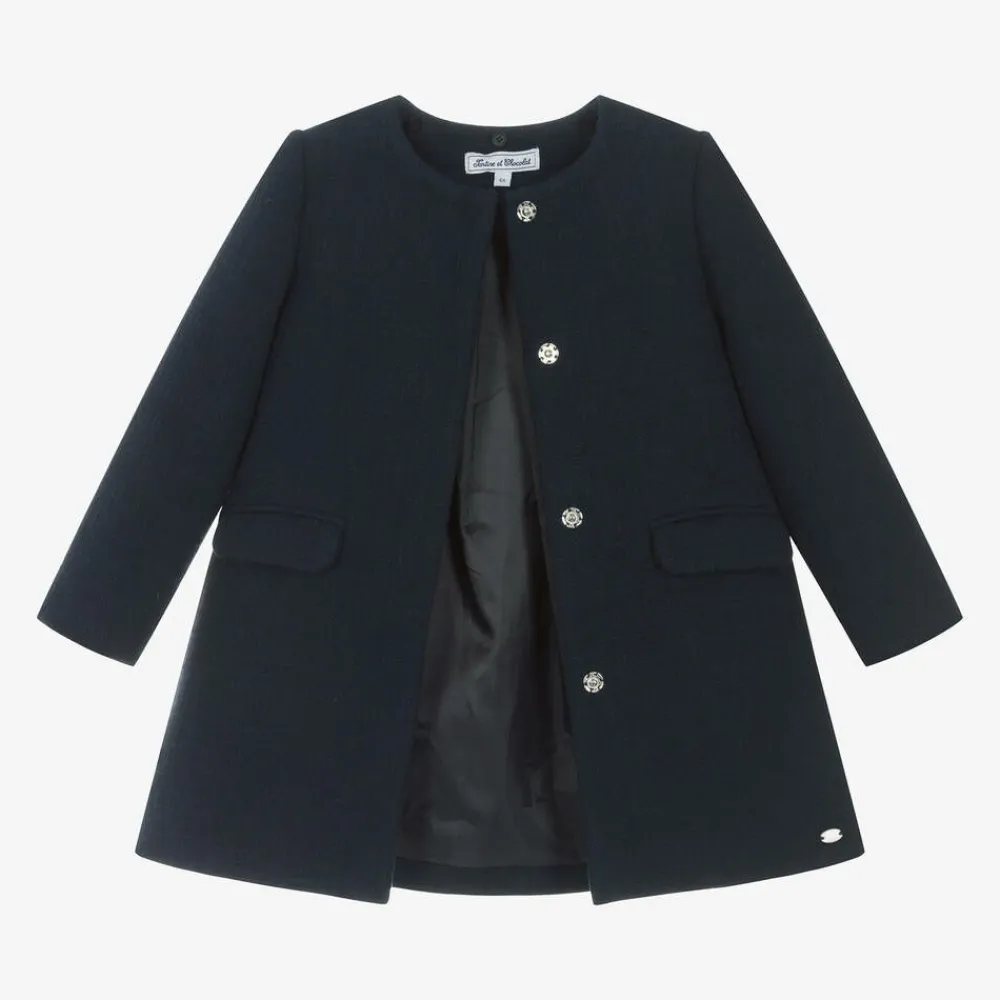 Tartine et Chocolat Coats & Jackets*Girls Navy Blue Collared Coat