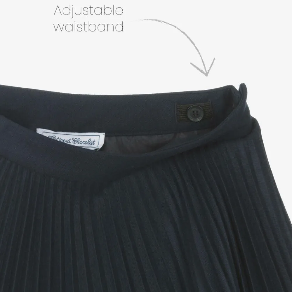 Tartine et Chocolat Skirts*Girls Navy Blue Pleated Skirt