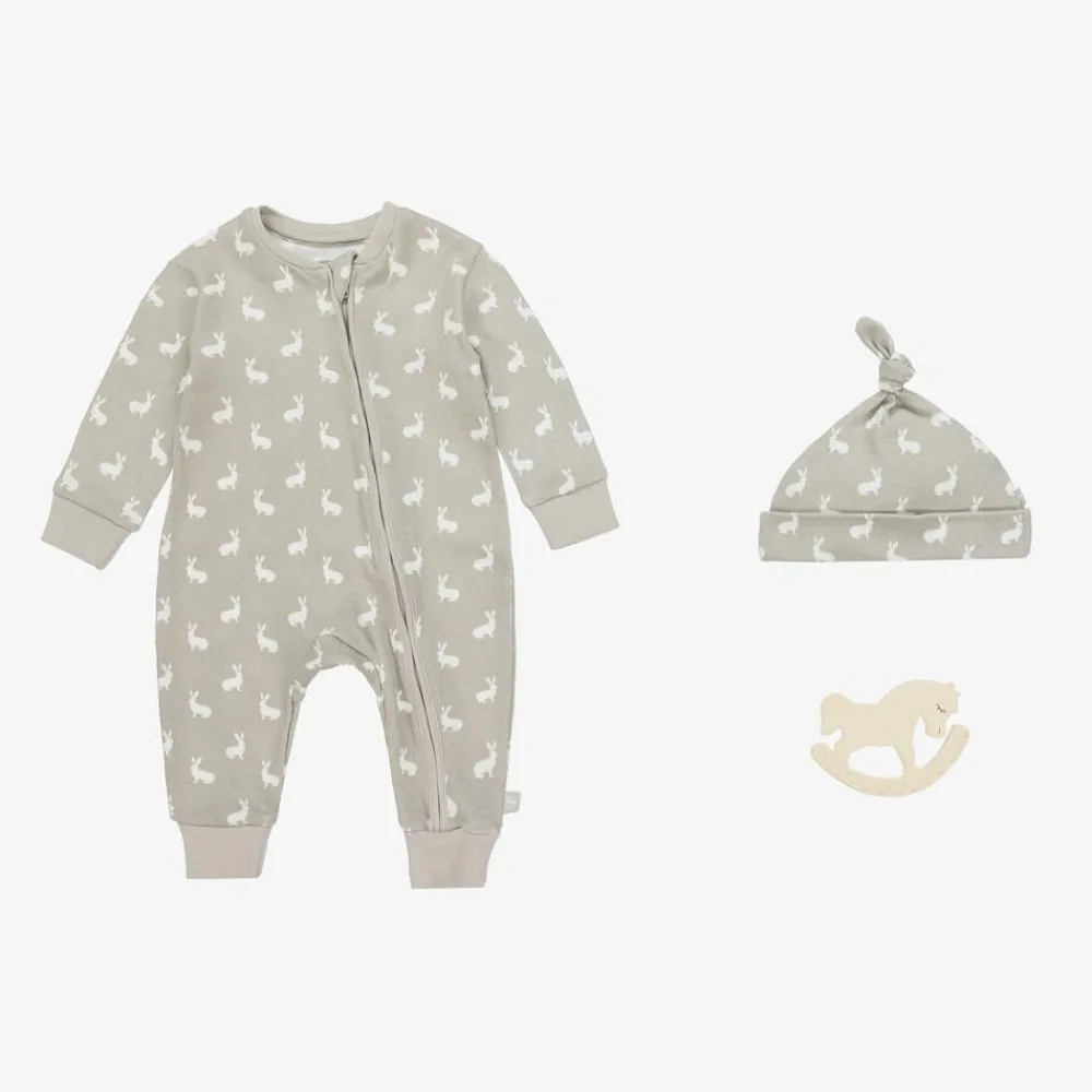 The Little Tailor Gifts|Babysuits*Grey Hare Print Cotton Babysuit Set