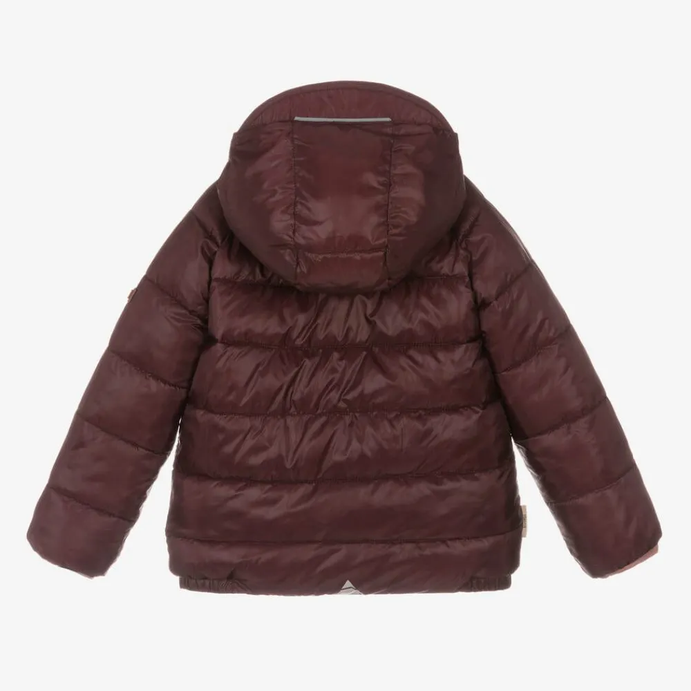 A reversible, hooded puffer jacket for boys and girls by British brand Töastie, matt dusky pink on one side and silky burgundy red on the other. This water-repellent outerwear piece is lightweight yet provides superior warmth with mid-weight insulation. The hood has a short peak and is gently elasticated on the sides for added protection from the weather. Both sides feature fleece-lined pockets with popper fastenings, reflective detailing for improved visibility, logo tabs on one sleeve and branded elasticated cuffs.