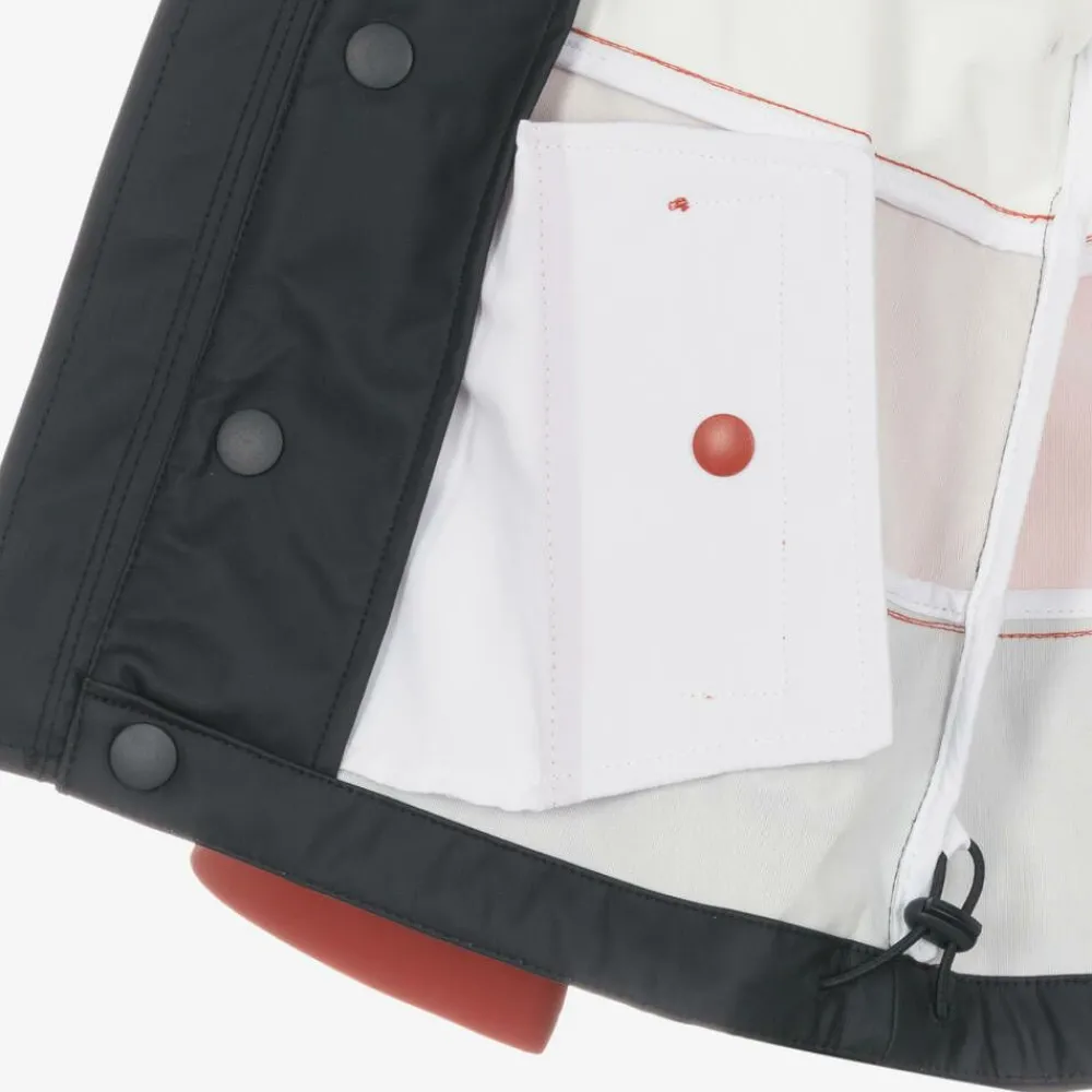 A hooded colourblock jacket for boys and girls by Tommy Hilfiger, designed in the brand's signature red, white and navy blue colourway. This practical design is made using windproof and water resistant technology, with adjustable popper fastening cuffs and a toggle hem for added protection. There are useful pockets on the front and a zip fastening concealed beneath a popper placket. Completing the stylish designer look, a white logo print can be seen on the chest and the signature flag features on one sleeve.