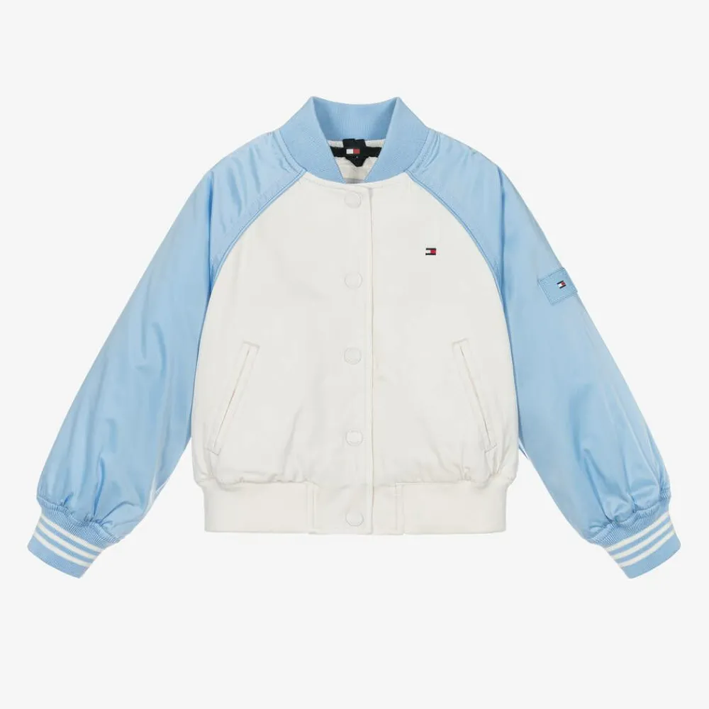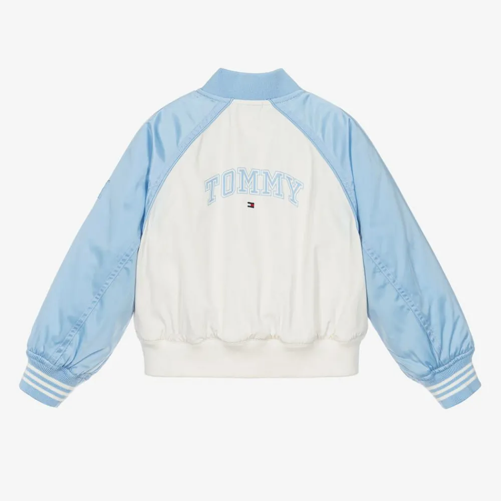 Tommy Hilfiger Coats & Jackets*Girls Ivory & Blue Varsity Bomber Jacket