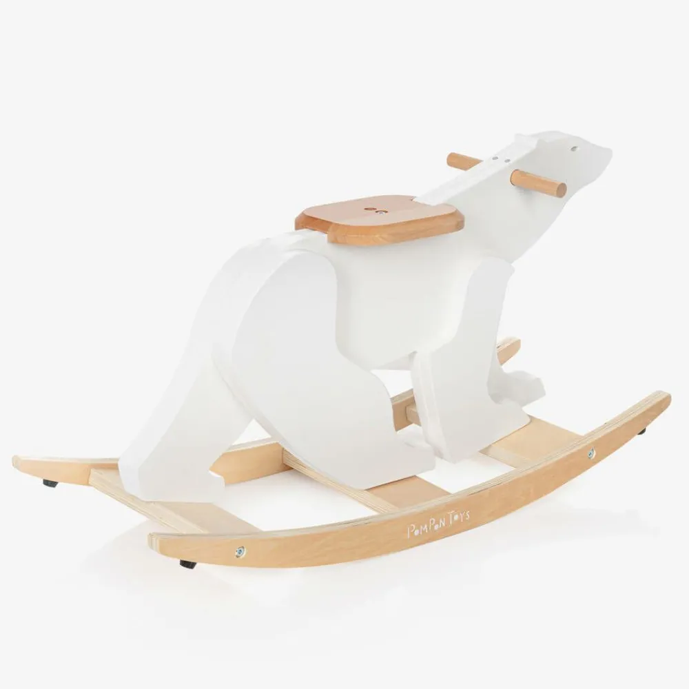 Inspired by the famous sculpture of the White Bear by François Pompon, this cute white rocking polar bear toy for little boys and girls is designed by Vilac. Crafted in smooth, lightweight wood, this adorable nursery accessory encourages hours of endless fun and is set on a sturdy, curved base for smooth rocking. It has a supportive seat and useful handles for your little one to hold on to.